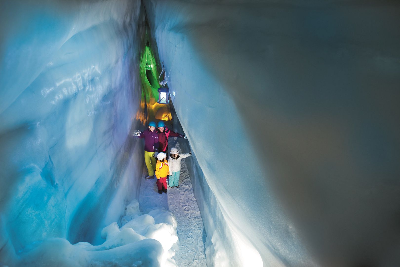 The icy journey starts just 200 m from the highest point on the Hintertux Glacier. A secure route leads to the gateway of this palace from the panoramic plateau of the Gefrorene Wand (3,250 m), offering some of the most beautiful panoramic views across the Zillertal mountains.